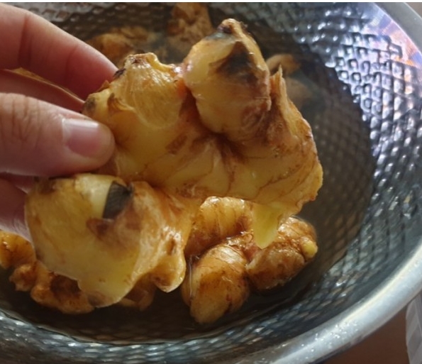 저는 생강을 말린 후 얇게 편을 썰어서 꿀과 함께 재운 뒤 조금씩 덜어서
